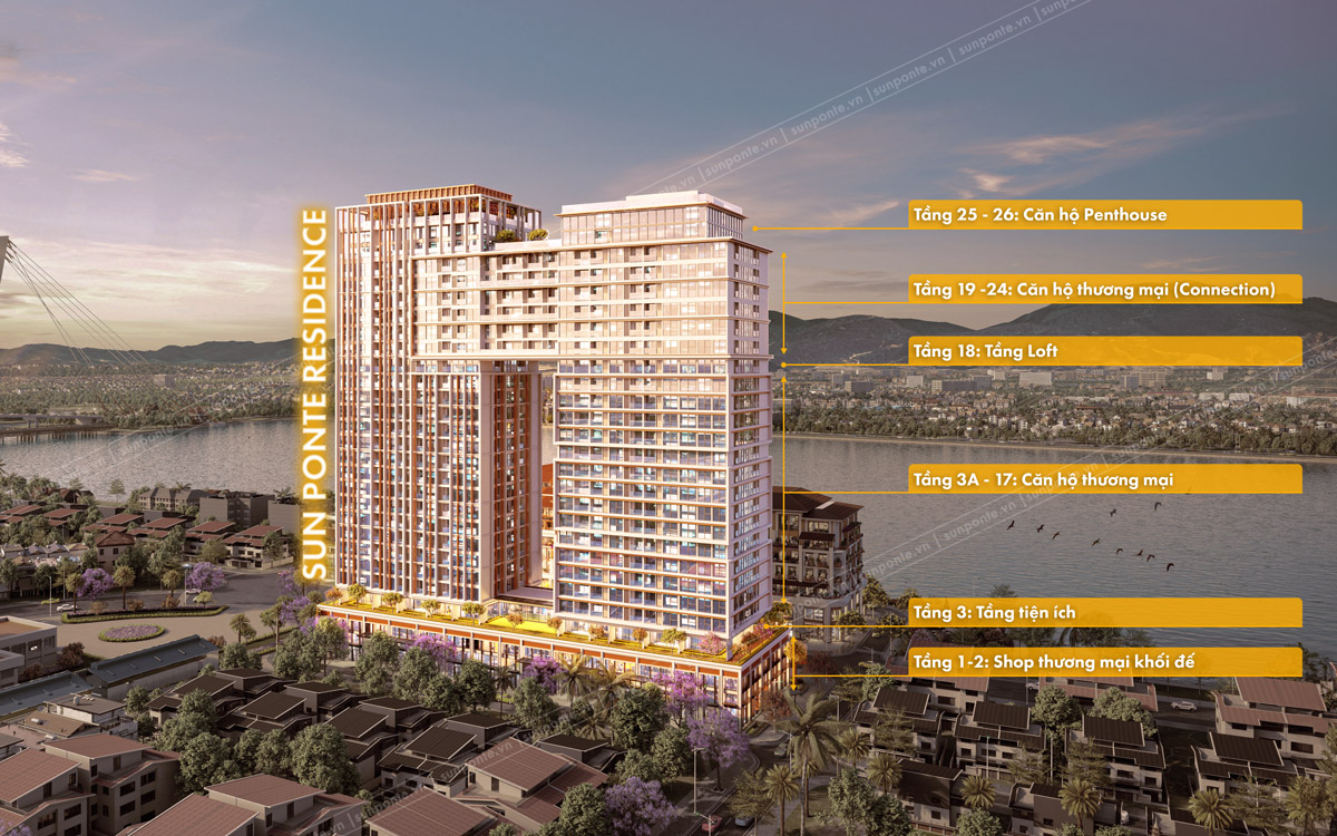 Tại The Ponte tập đoàn Sun Group mang tới 06 loại hình căn hộ khác nhau: Căn hộ 1, 2, 3 phòng ngủ, căn hộ Studio, Căn hộ Dual Key, và Căn Hộ Penhouse với các thiết kế diện tích từ 25.8 – 112.1 m2 đáp ứng gần như mọi nhu cầu để ở, kinh doanh hay nghỉ dưỡng của gia chủ.