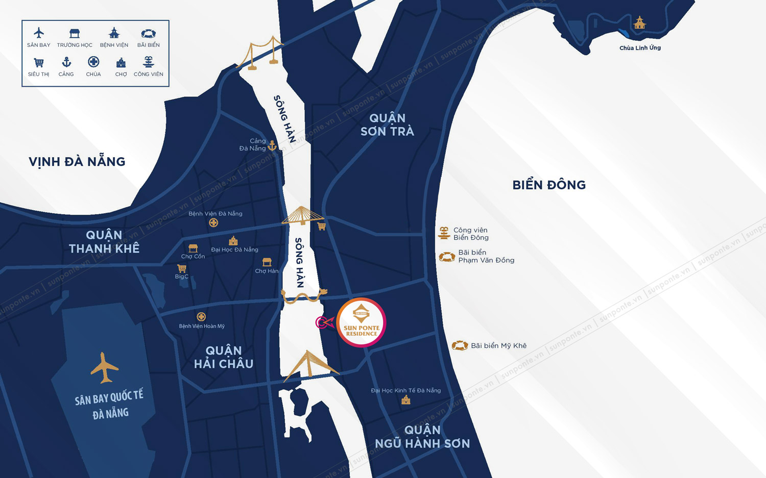 Sở hữu một vị trí trung tâm nơi thành phố du lịch giúp Sun Ponte Residence kết nối nhanh chóng và thuận lợi đến mọi nơi trong và ngoài thành phố. Tọa lạc trên tuyến đường Trần Hưng Đạo và cách đại lộ Ngô Quyền chưa tới 100m, dự án Sun Ponte Residence mở ra cánh cửa giao thương, văn hóa, du lịch không giới hạn. Đặc biệt với vị trí cách sân bay quốc tế Đà Nẵng chưa tới 2Km, cư dân Sun Ponte có thể dễ dàng di chuyển tới sân bay và từ đây kết nối tới mọi miền của đất nước.